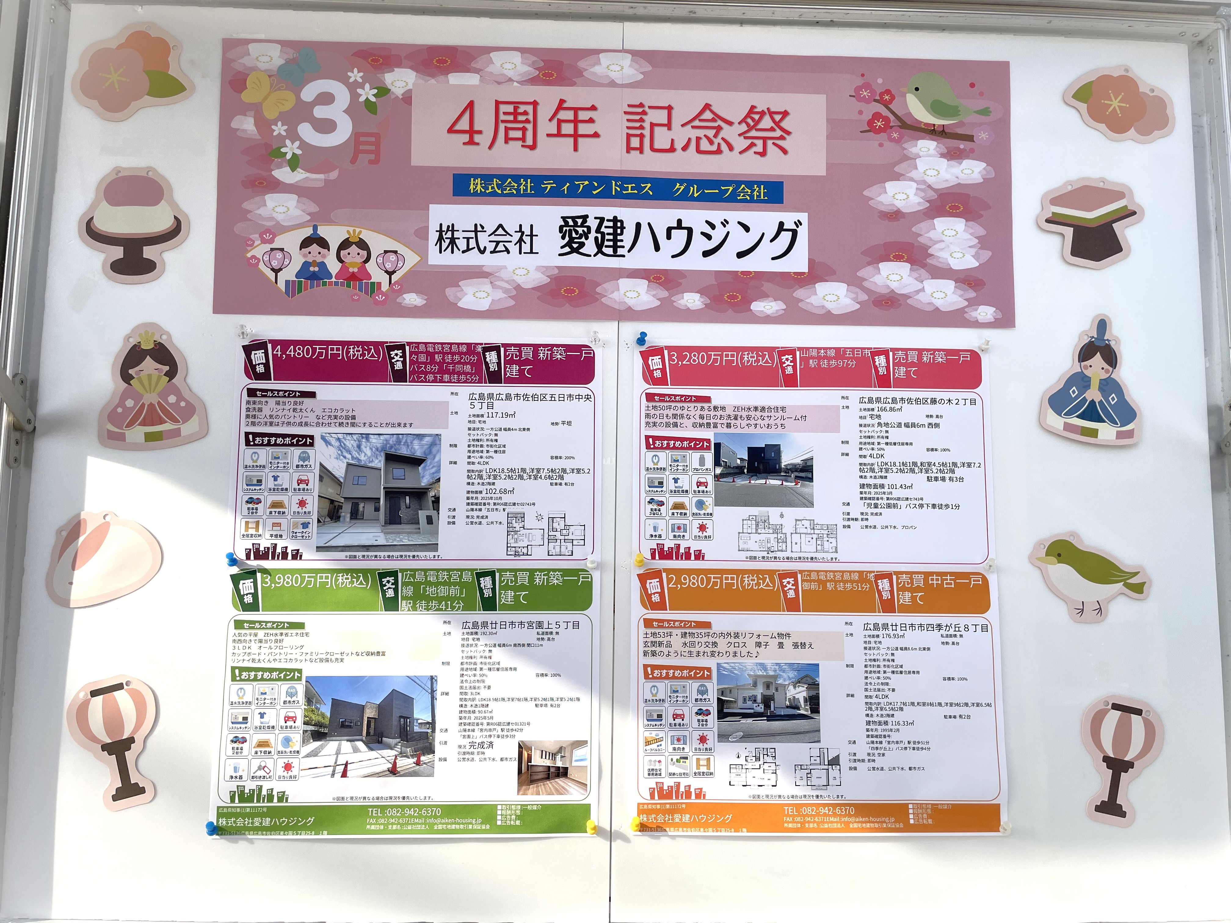 3月になりましたので、会社前の掲示板を雛祭りバージョンに変更しました!
