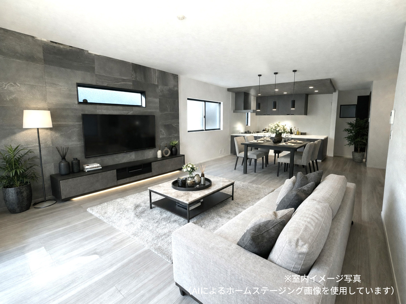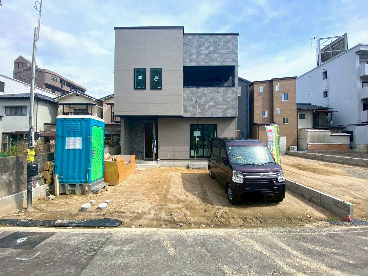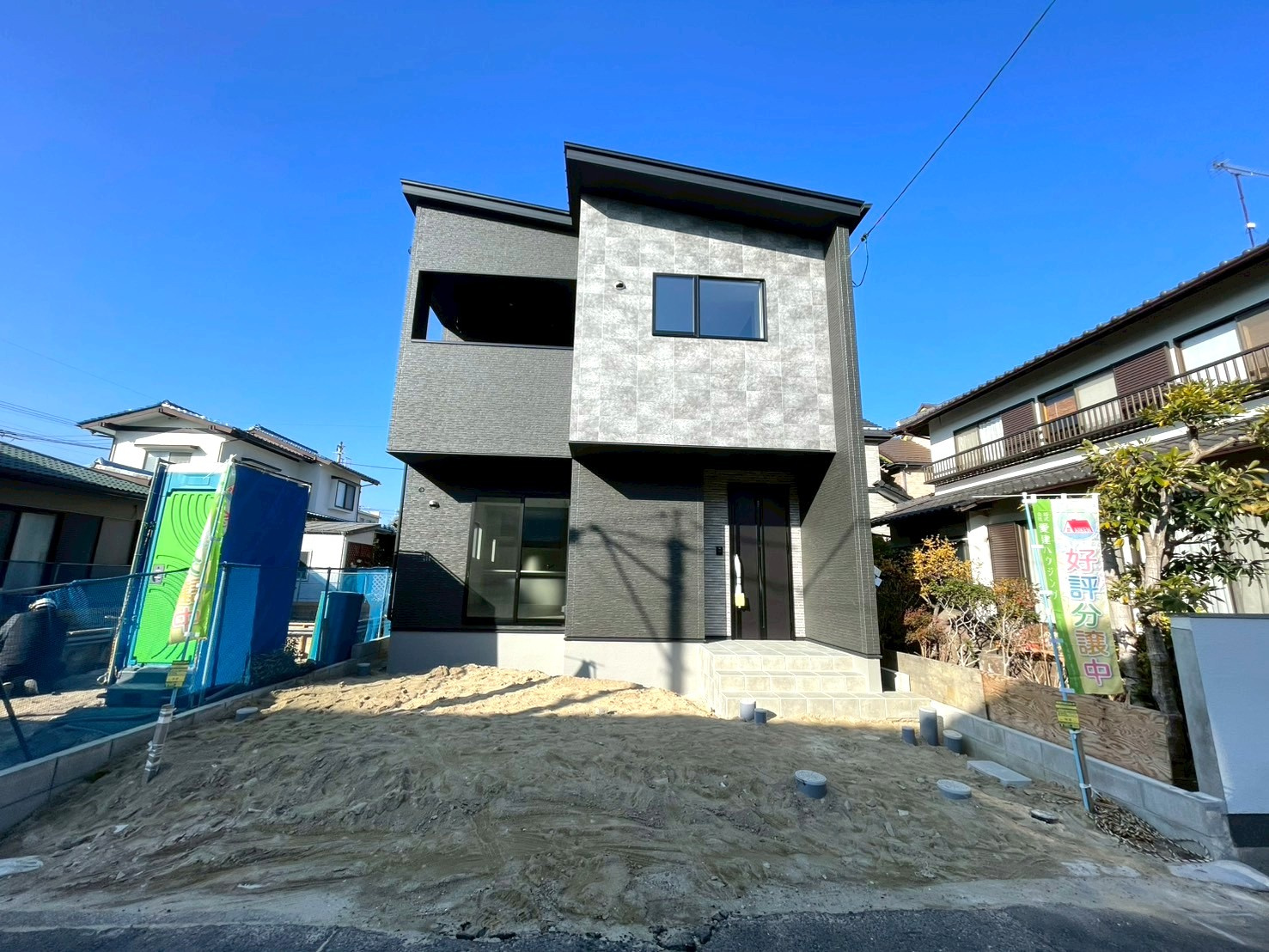 ※外構は現在工事中です。グレーとブラックで統一したデザインで、スタイリッシュでモダンな雰囲気に仕上がっています。